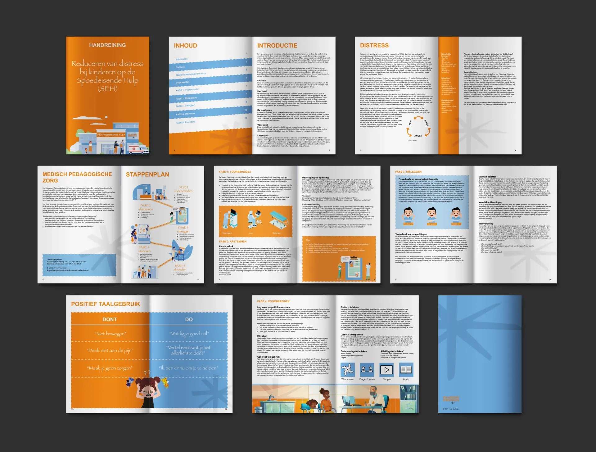 De handreiking “Reduceren van distress bij kinderen op de Spoedeisende Hulp” biedt praktische handvatten om distress bij kinderen te verminderen. Bekijk het ontwerp van de handreiking, gemaakt door Futurfox